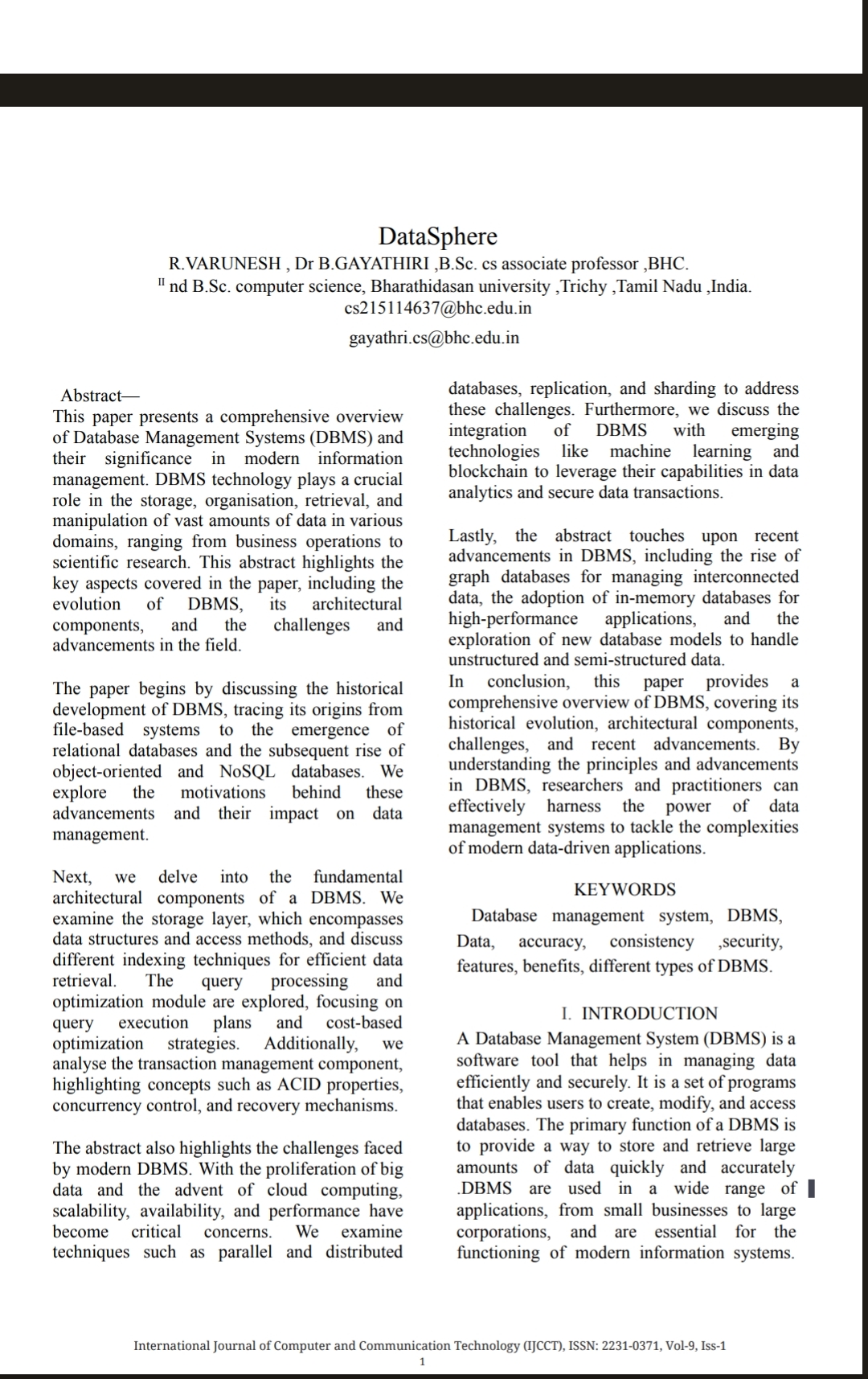 This paper presents a comprehensive overview of Database Management Systems (DBMS) and their significance in modern information management. DBMS technology plays a crucial role in the storage, organisation, retrieval, and manipulation of vast amounts of data in various domains, ranging from business operations to scientific research. This abstract highlights the key aspects covered in the paper, including the evolution of DBMS, its architectural components, and the challenges and advancements in the field.